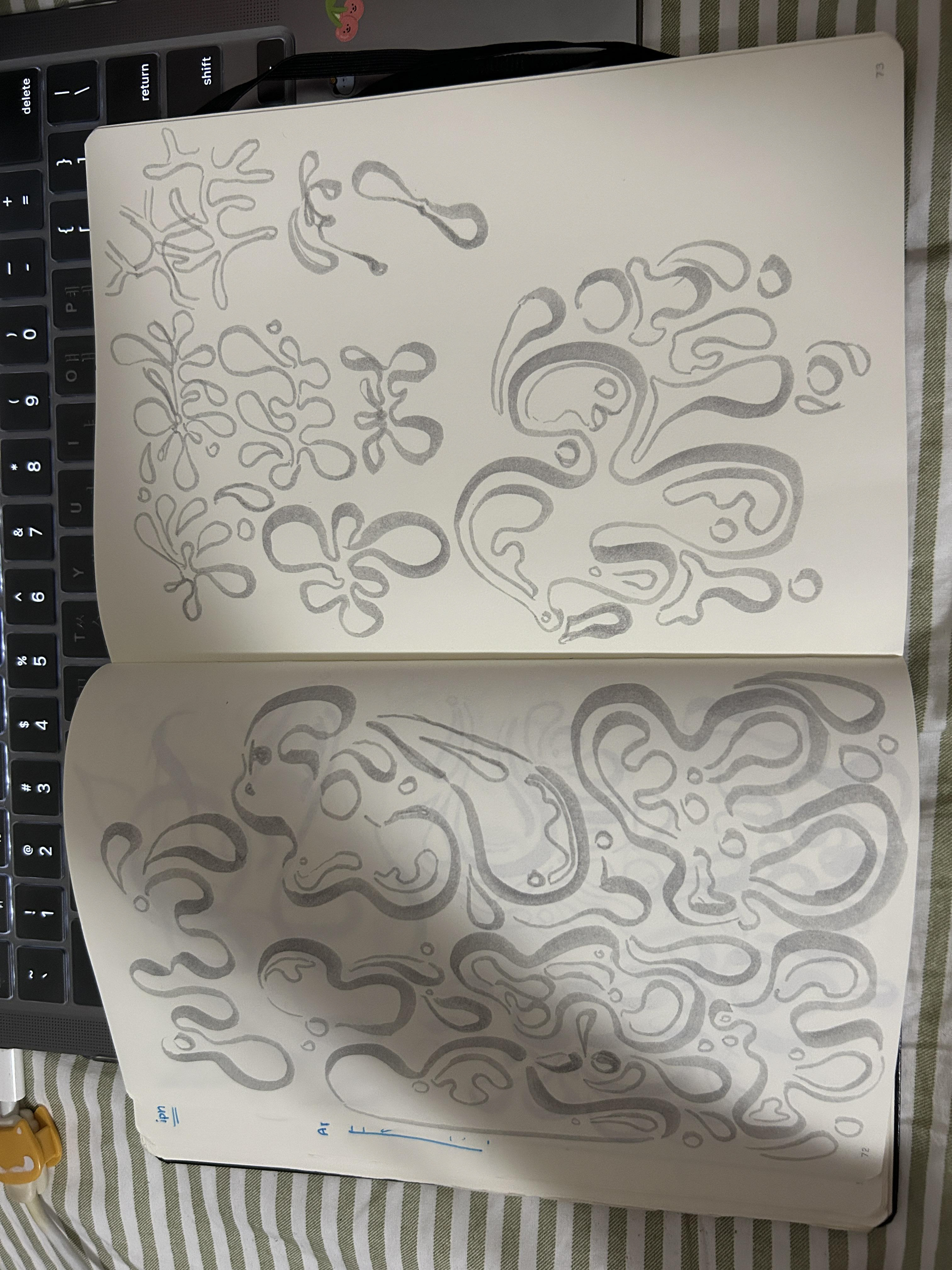 The left image shows the initial sketches for honey. I was trying to hone in on the sticky and fluid motion of honey drips.